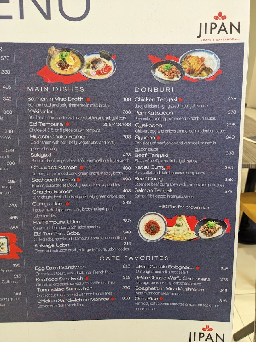 Jipan Japanese Bakery And Coffee Shop - Head Office offers a delightful fusion of authentic Japanese flavors and freshly baked goods. Their menu shines with a diverse selection, from the comforting Pork Tonkatsu Bento—crispy, savory, and filling—to the refreshing Hiyashi Chuka Ramen, a perfect cold dish blending chilled noodles with cucumber, corn, kani, and a tangy Japanese sauce. The bakery section stands out for its high-quality bread, praised by longtime patrons for items like pandesal, Monroe loaf, and scallion bread, which maintain consistent freshness and flavor.